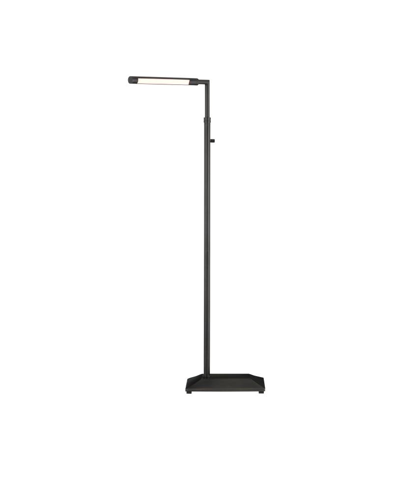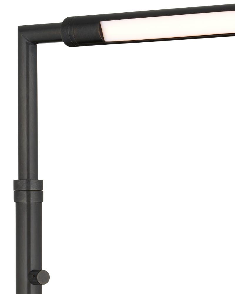 The Autrand Bronze Floor Lamp is a nimble fixture that focuses illumination wherever it is needed most, as it swivels from side to side, and the tubular shade on the top arm can be maneuvered to cast light up, down, or right to left. Made of metal in an oil-rubbed bronze finish, the simple lines of this floor lamp make it great for any number of interior styles, including contemporary. The fixture has a dimmer switch and is lit with integrated LED technology.