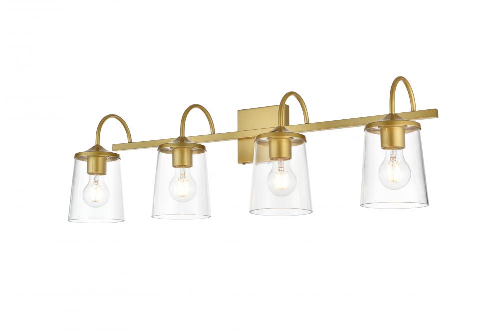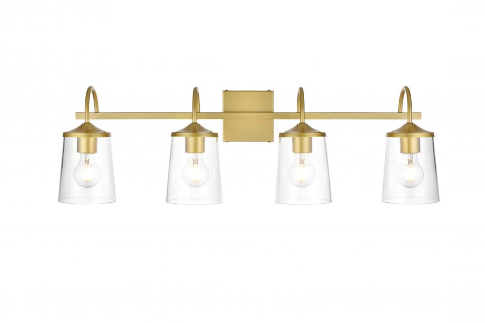 Defined by curved metal arm extends to suspend the clear bell glass shade. A contemporary stunner, it shows off the straight line details from the backplate and the streamline thin metal arm. Compatible with dimmers, so you'll have the right amount of light in any given time of the day. Completely versatile, you can place this wall light as an uplight or downlight.