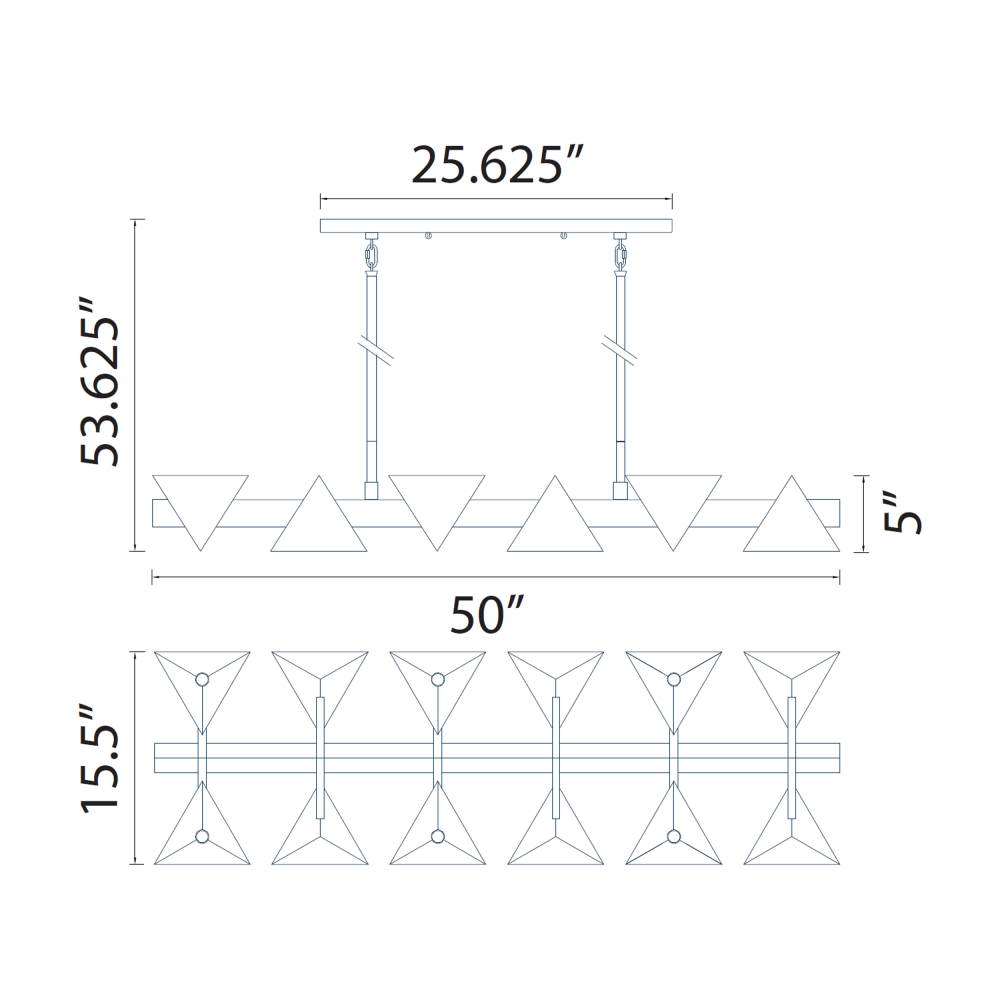 Avante 50" 6-Light, Geometric Triangular Linear in Brushed Black