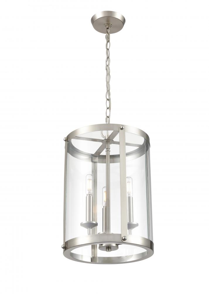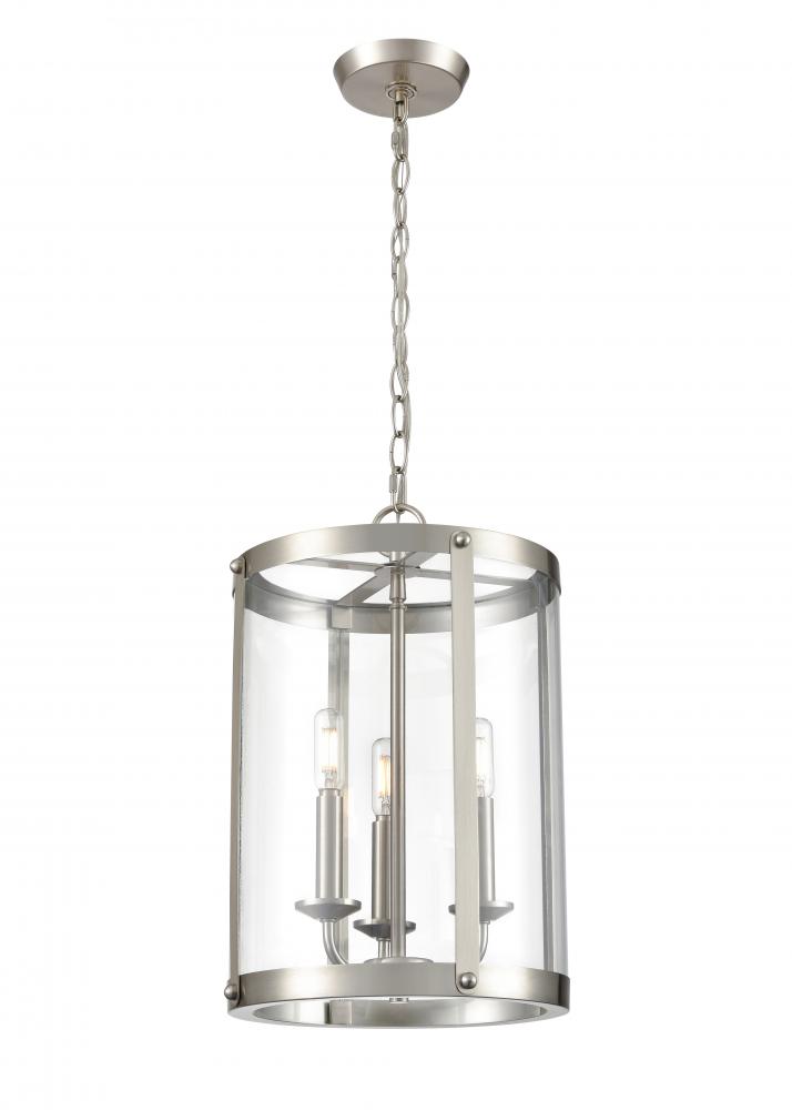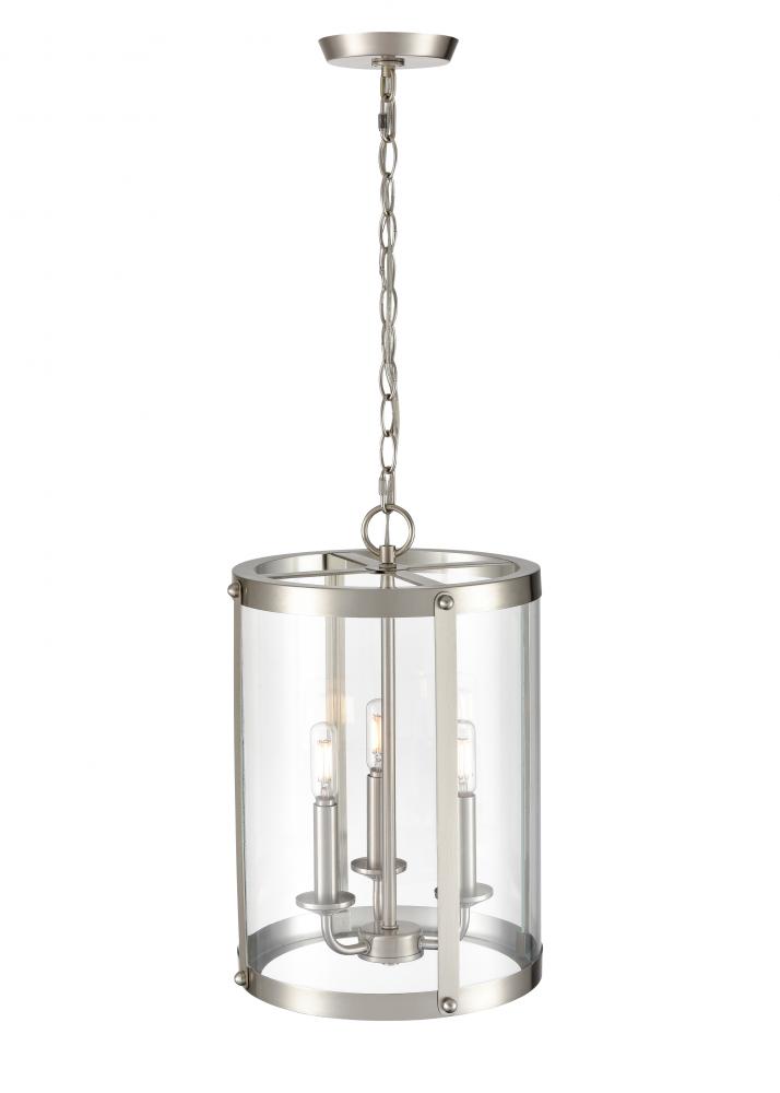 Sparkling clear glass cylinders set into a minimalist steel constructed framework provide abundant light in the Aydenn Collection of pendant lighting. Finished in quintessential matte black or gleaming brushed nickel, these definitive design statements are a bright addition to the foyer or hall.
