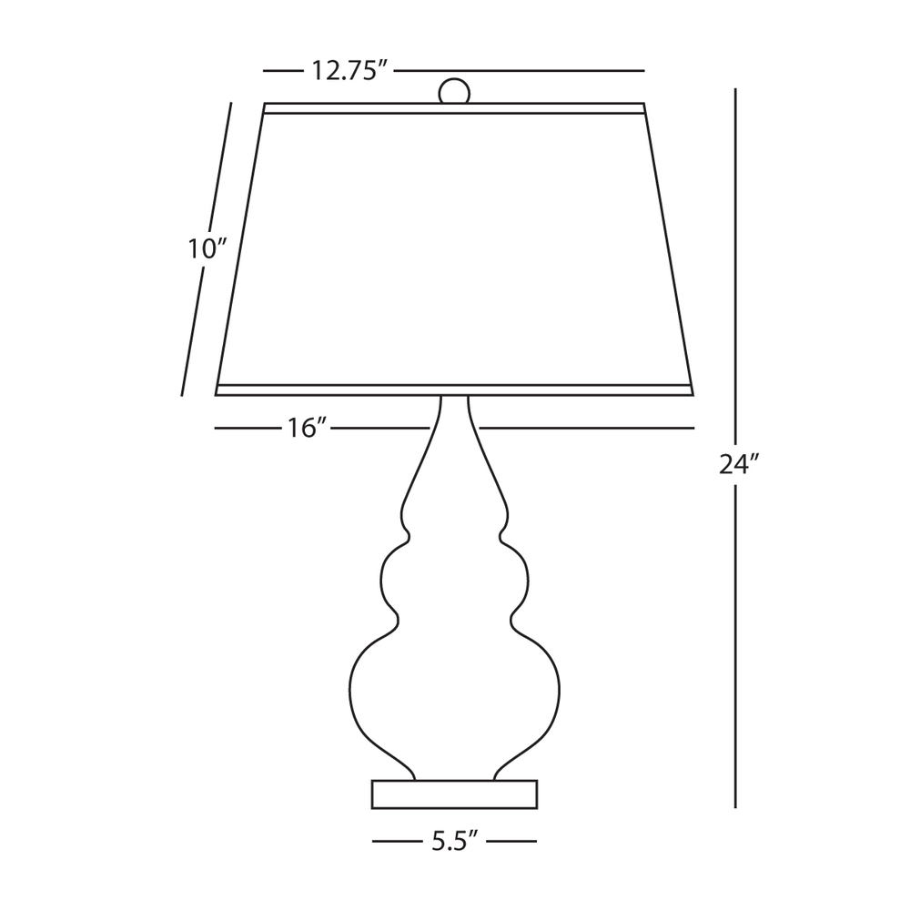 Our Triple Gourd collection features a simple but gracefully curving silhouette. Available in a wide array of vibrant colors and several different base finishes. - Baby Blue Glazed Ceramic with Lucite Base Small Triple Gourd Accent Lamp with Pearl Dupioni Fabric Shade