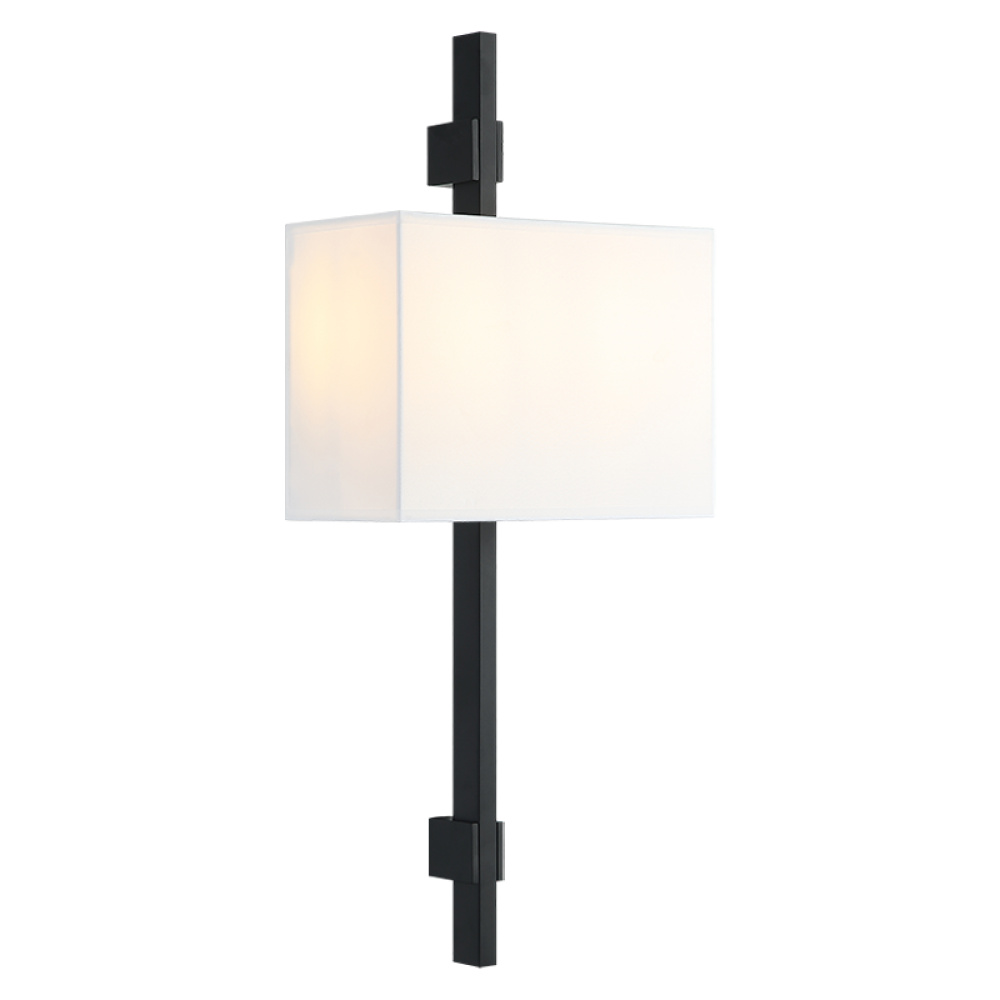 2 LT 10"W "BADGLEY" W WHITE FABRIC SHADE MATTE BLACK WALL SCONCE E12 LED 10W