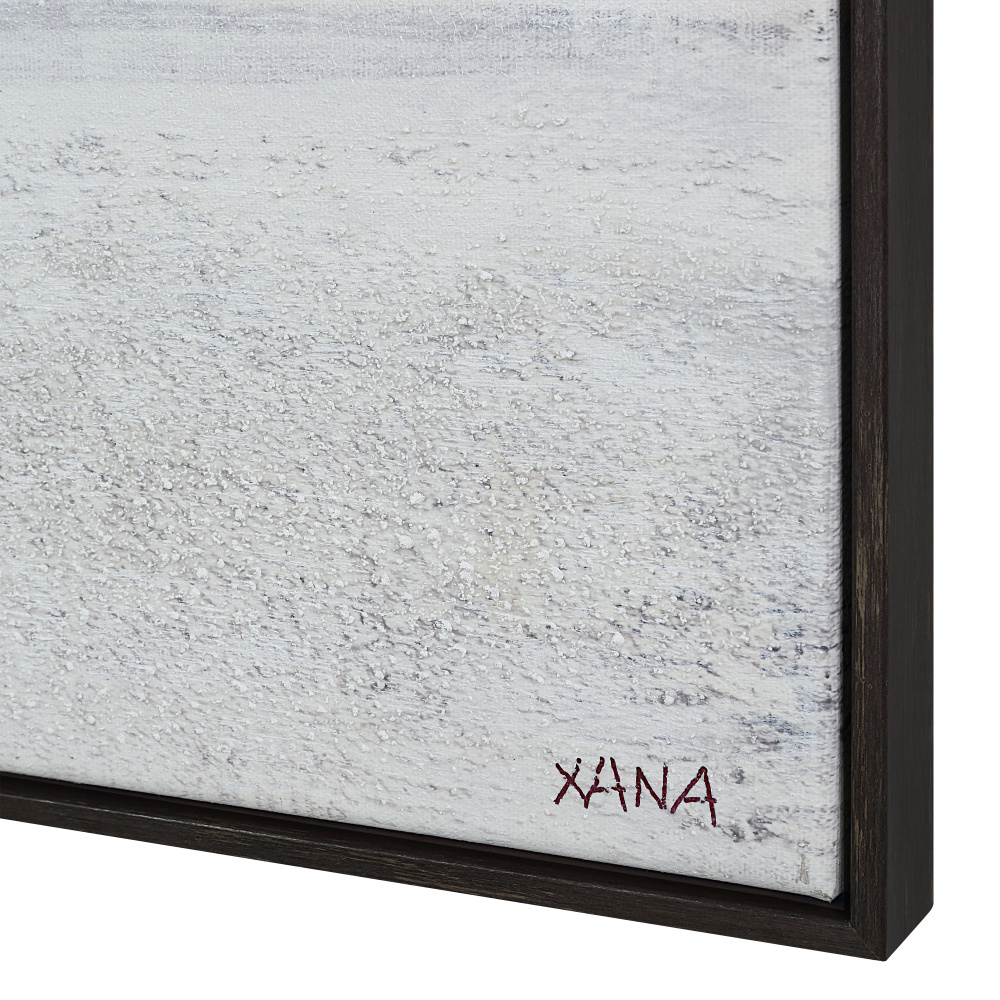 Bring the outdoors in with this stunning oversized landscape painting where the beach takes the starring role and the sky and clouds are supporting actors. Featuring hand-painted sand gel textured accents, this beautiful canvas will create a striking large-scale impact in your design project.