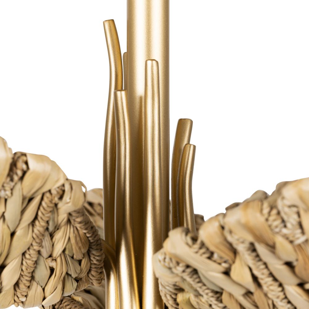 Hand-Forged Recycled Steel Frame. Hand Finished In French Gold with Handwoven Seagrass Shades or Gold with Darkened Edges and our Authentic Banana Leaf. Inspired by our travels to Tropical Islands.