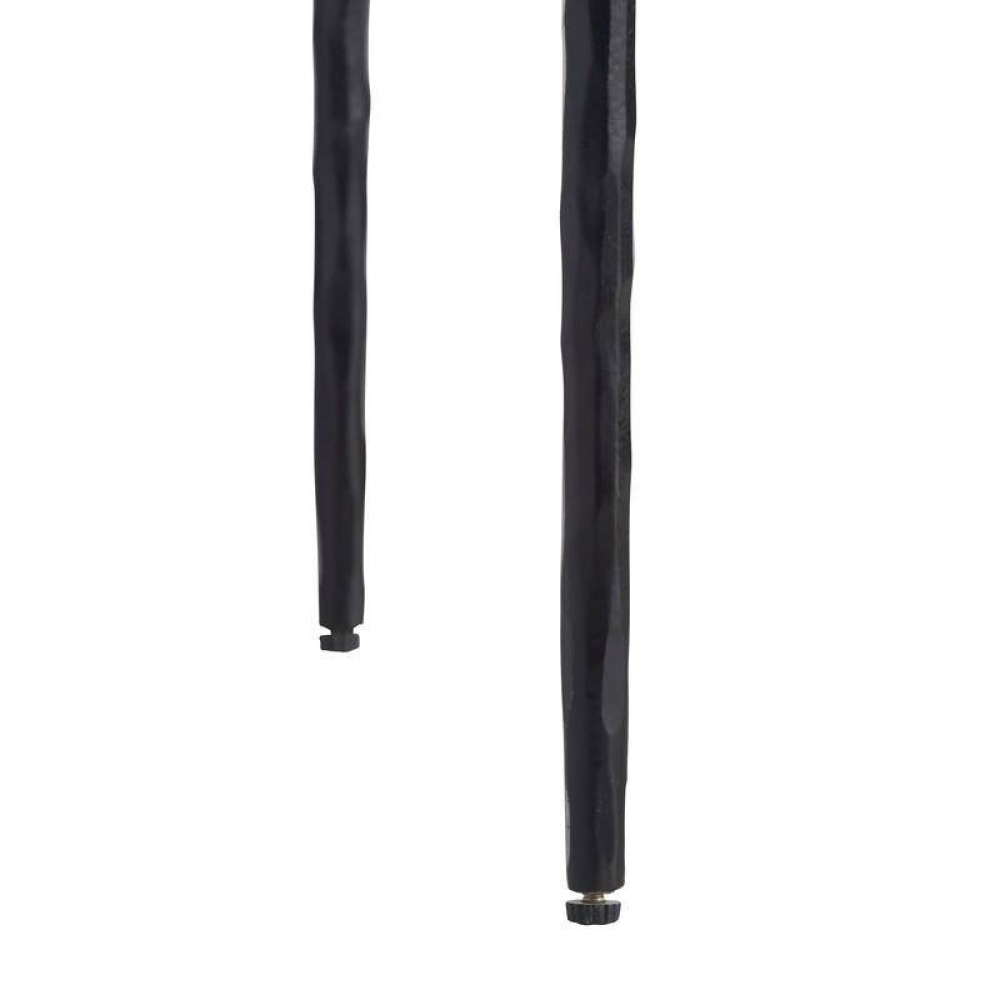 This exquisite frame is perfectly poised, perched on delicate legs recalling an insect. A body of natural iron is hand-forged to yield soft impressions along its sharp-angled frame. The tight seat and bolster back are covered in performance fabric in Oxford white. Finish will vary.