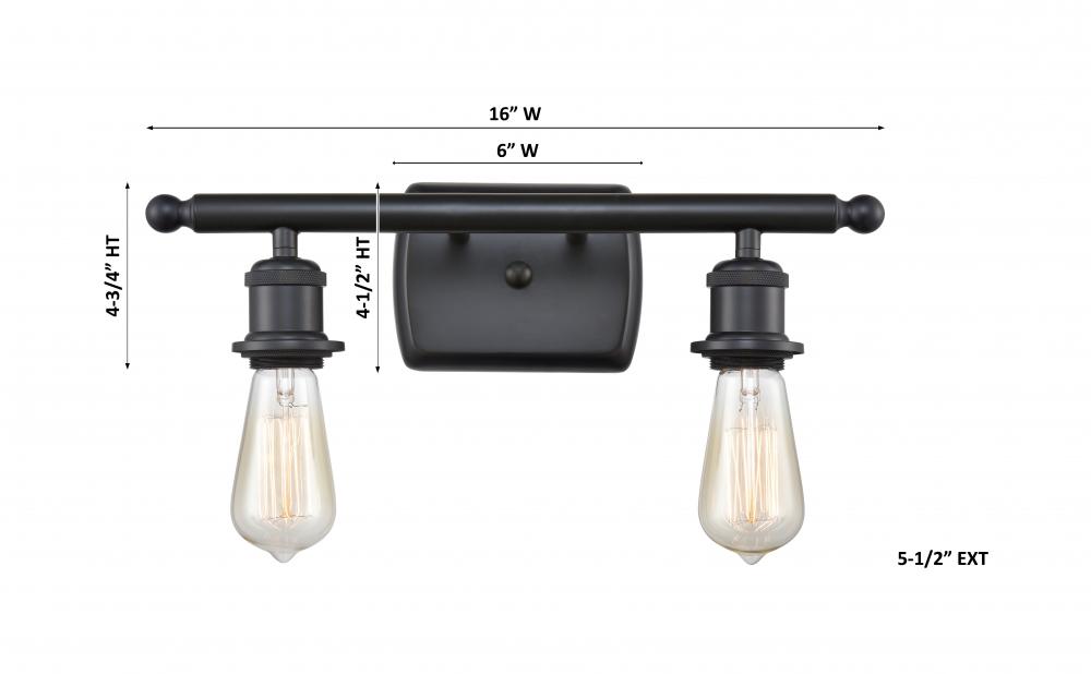 Bare Bulb - 2 Light - 16 inch - Matte Black - Bath Vanity Light