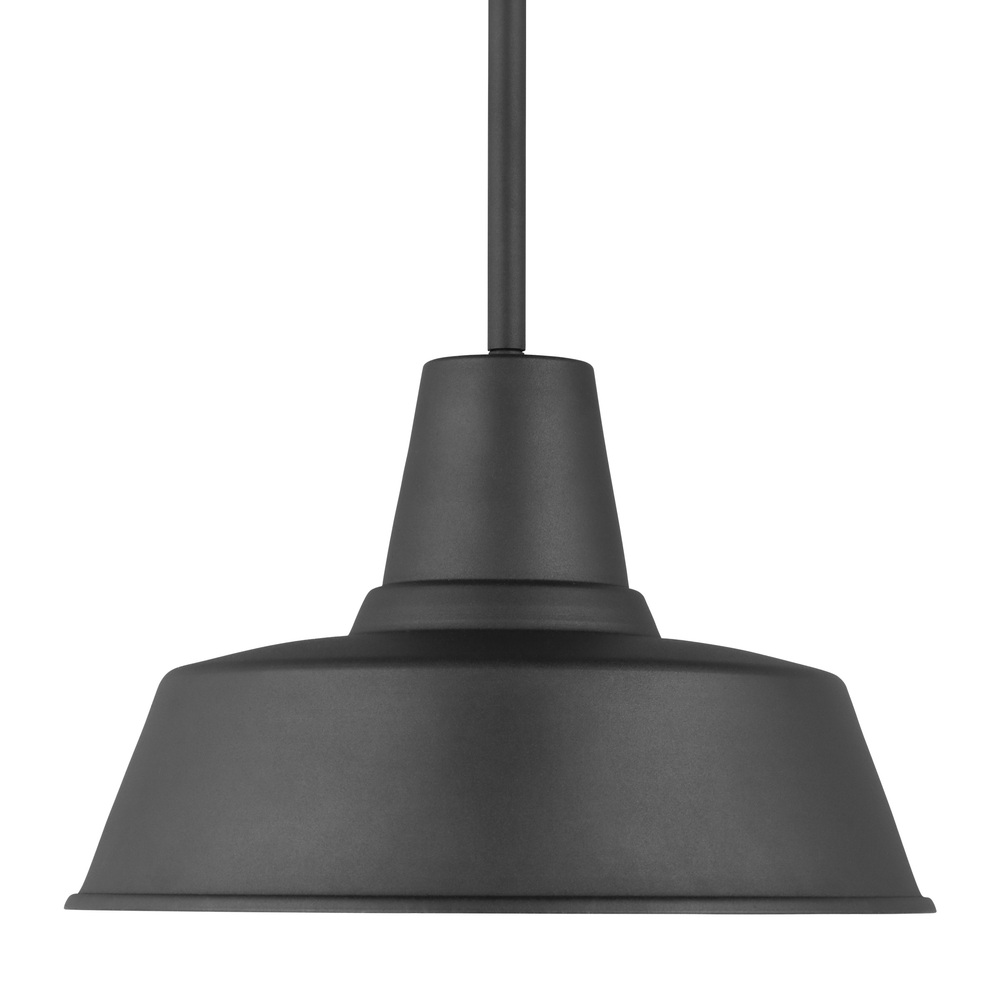 The Barn Light one light outdoor pendant fixture in black creates a warm and inviting welcome presentation for your home's exterior. The classic Barn Lights are hand crafted in aluminum and coated in a Galvanized or Blacksmith finish. Ideal for large or heavily trafficked outdoor areas that need plenty of downward directed light. The oversized Barn Lights make great accents to any commercial lighting plan or residential garage entry, shed, or patio. To customize your look, a 6" extender is included with every fixture. Also available as Dark Sky with four size options to choose from.
