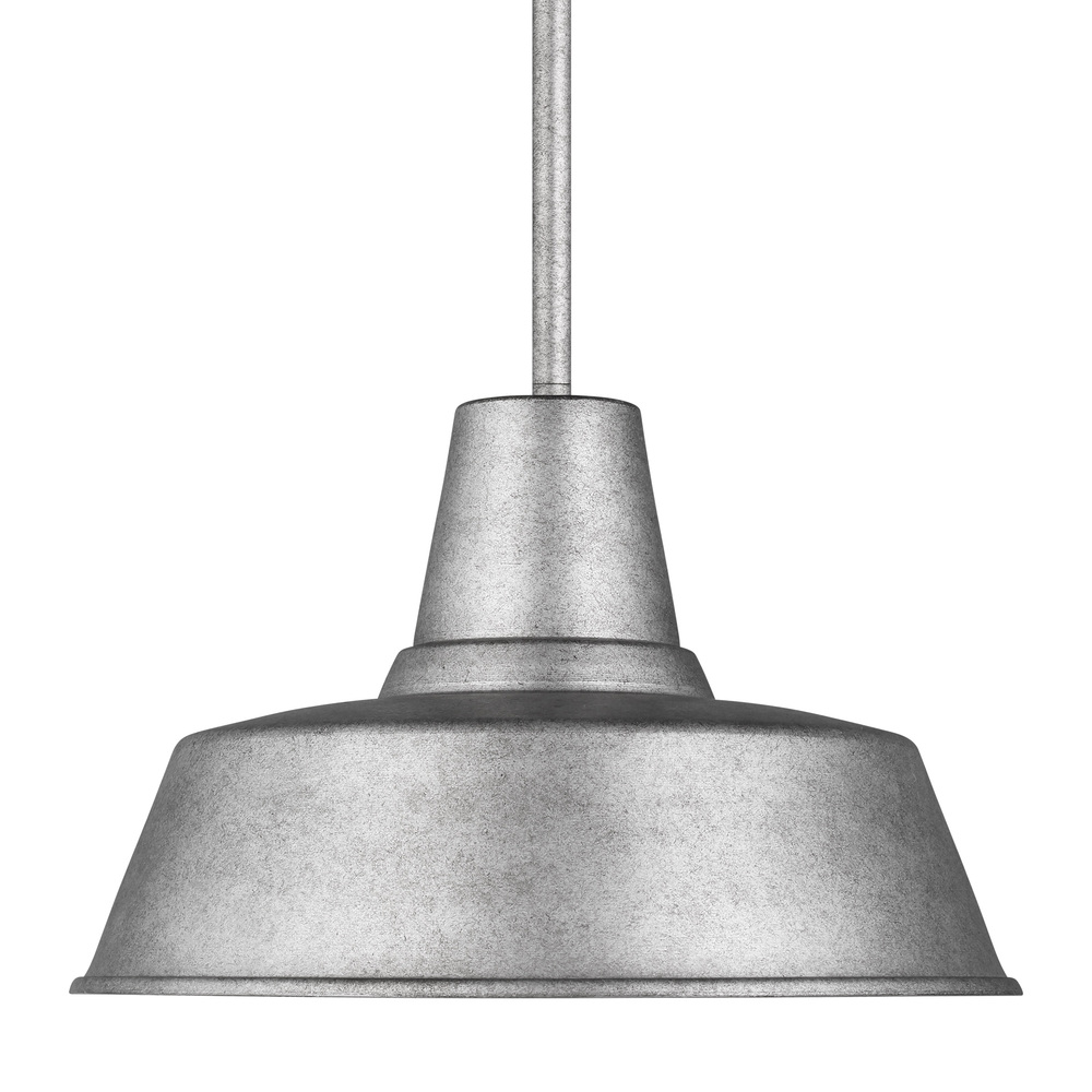 The Barn Light one light outdoor pendant fixture in weathered pewter creates a warm and inviting welcome presentation for your home's exterior. The classic Barn Lights are hand crafted in aluminum and coated in a Galvanized or Blacksmith finish. Ideal for large or heavily trafficked outdoor areas that need plenty of downward directed light. The oversized Barn Lights make great accents to any commercial lighting plan or residential garage entry, shed, or patio. To customize your look, a 6" extender is included with every fixture. Also available as Dark Sky with four size options to choose from.