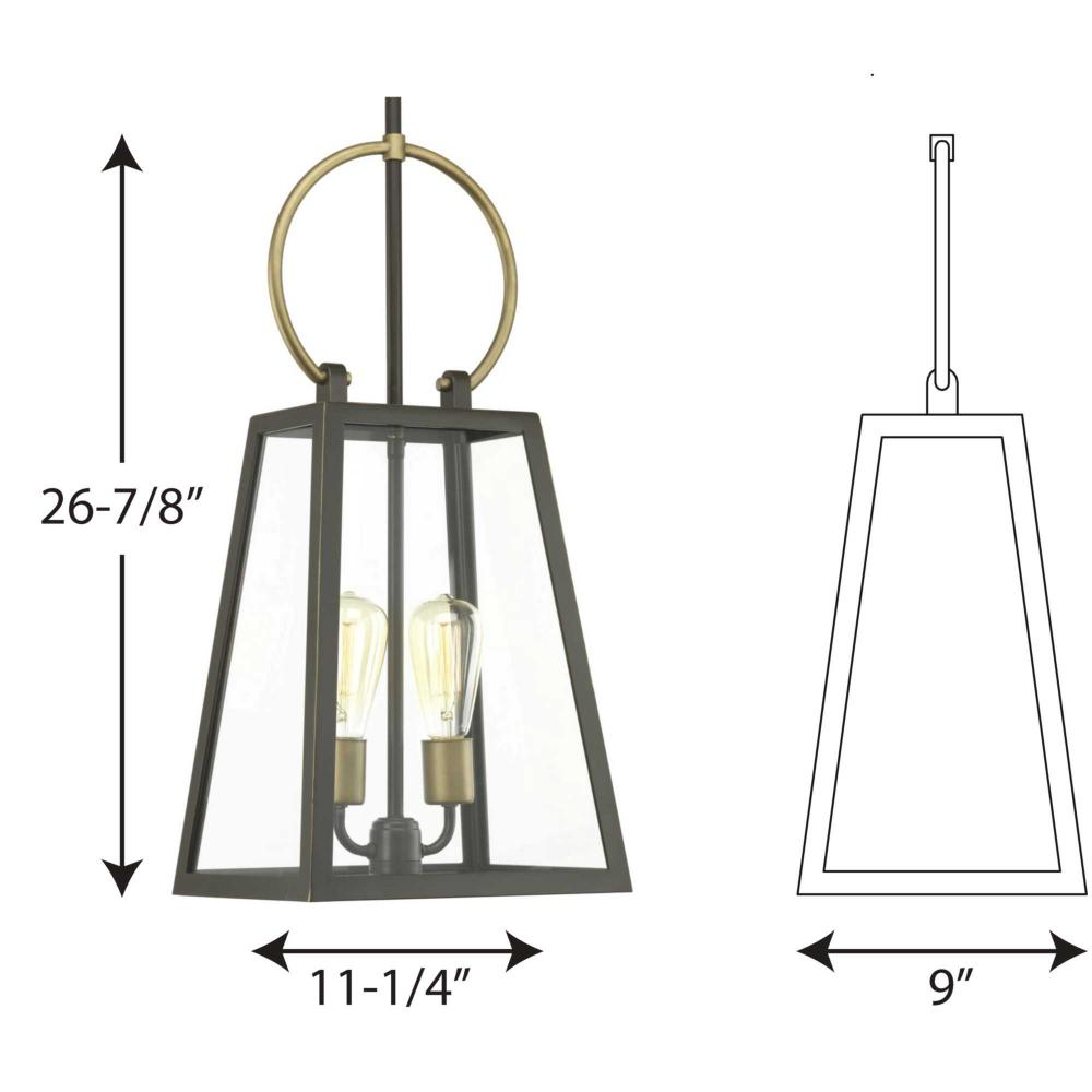 Barnett lanterns deliver timeless appeal with a decidedly modern flair;Features dramatic overscaled loop in a contrasting brass-tone finish;Antique Bronze finish;Large clear panes of glass frame your choice of traditional or vintage style bulbs;Hanging lan
