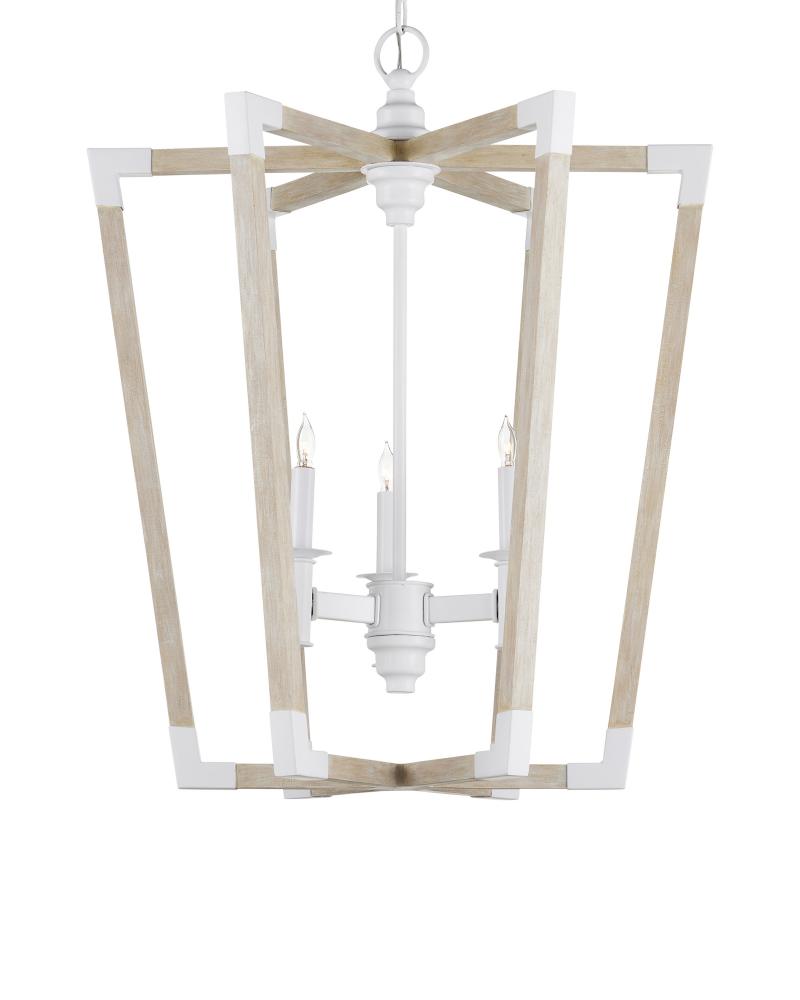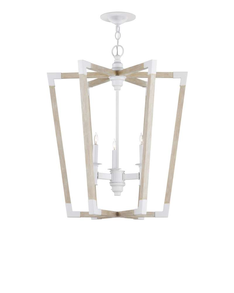 The Arts & Crafts movement inspired the design of the Bastian Medium Sandstone Lantern, which is made of wrought iron and wood in sugar white and sandstone finishes. The crisp feel of the white metal clasping the spokes of washed wood brings extra sophistication to this lantern-shaped chandelier. Adjustable from 35.5" to 103.5" with use of included chain/rod kit/cable. If your space calls for a longer drop, additional chain/rods/cable is available for purchase.