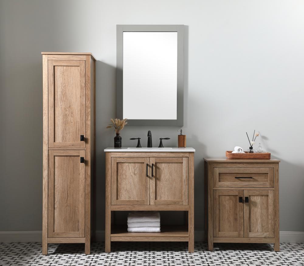 Choose from multiple finishes and sizes to effortlessly match it with our existing bathroom vanity collection. Comes with anti-tipping hardware for your safety in mind.