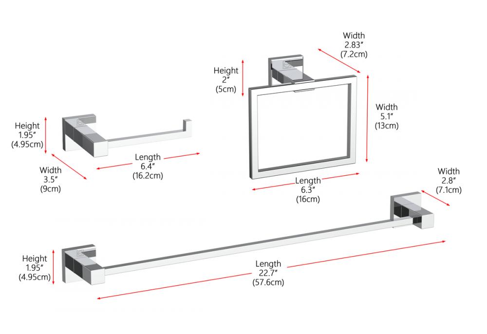 Each of the included items were designed for easy wall-mounted installation, offering a secure and space-saving solution for your bathroom.