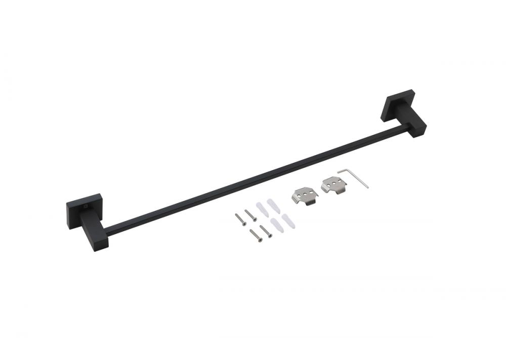 This comprehensive bathroom hardware set includes a 22.7" long towel bar, a 6.4" long open-ended toilet paper holder, and a practical 6.3" towel ring, offering a complete solution for your bathroom needs.