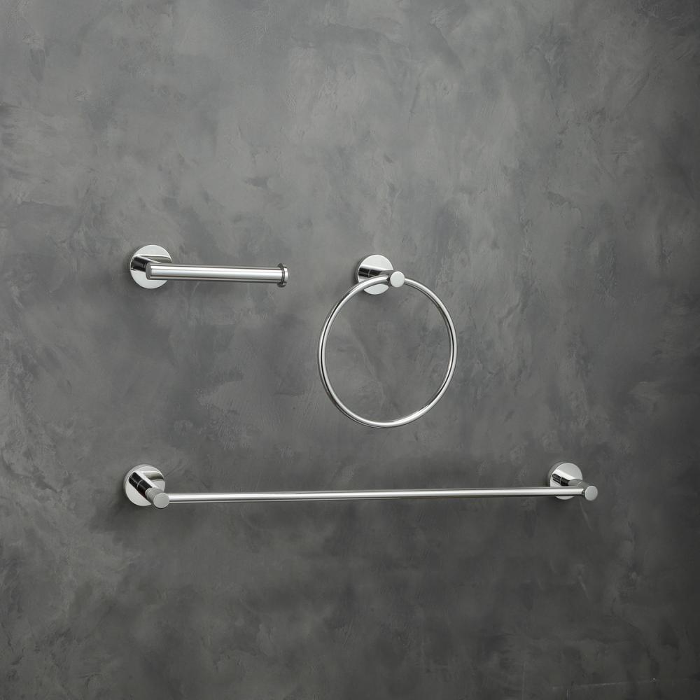 This set includes a 22.5" long towel bar, a 6.3" long toilet paper holder, and a stylish 7.1" towel ring, providing everything you need for your bathroom.
