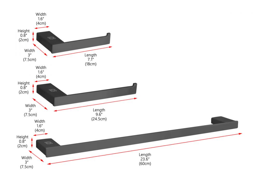 Each of the included items were designed for easy wall-mounted installation, offering a secure and space-saving solution for your bathroom.