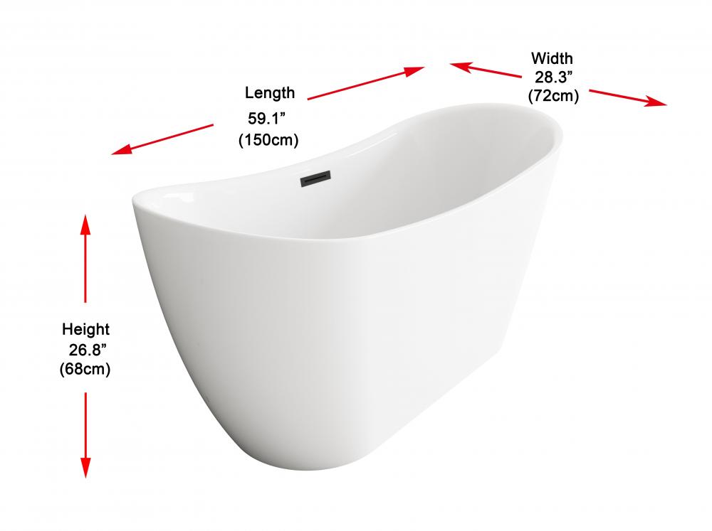 Bathtub 59.1 x 28.3 x 26.7 GW with MBK drain kit