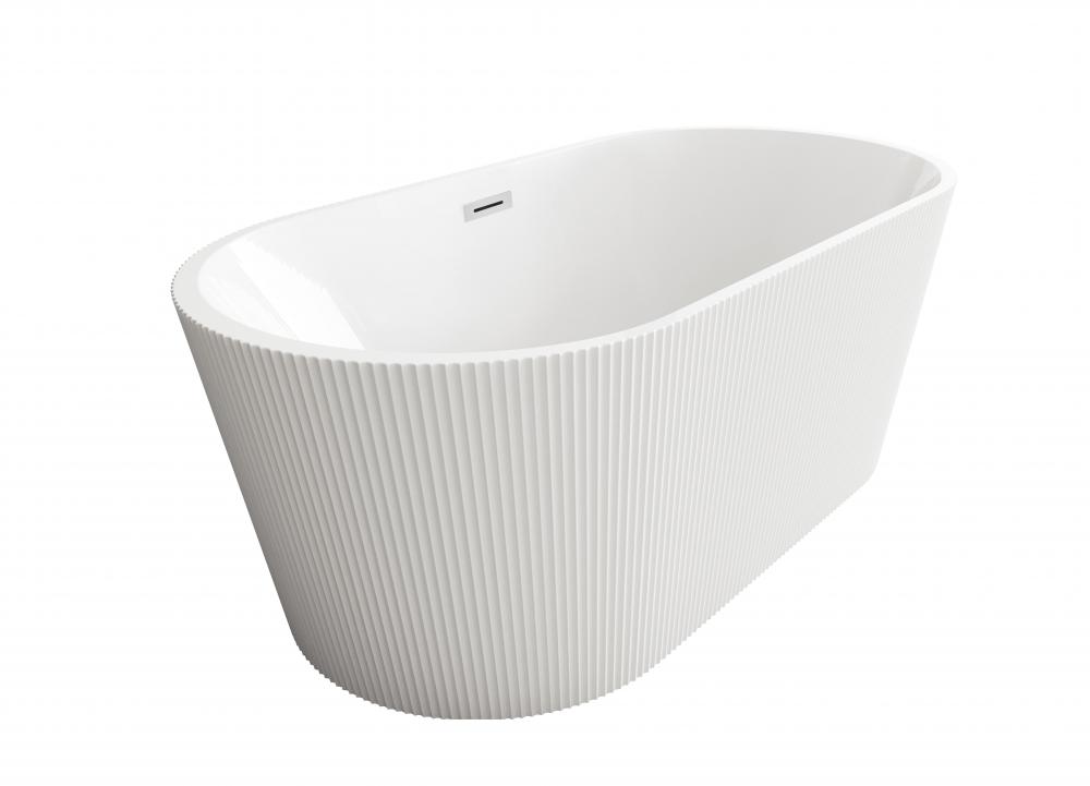 Elevate your bathroom’s aesthetic with this stunning freestanding soaking bathtub, featuring a vertical fluted exterior design that adds texture and sophistication to any space.