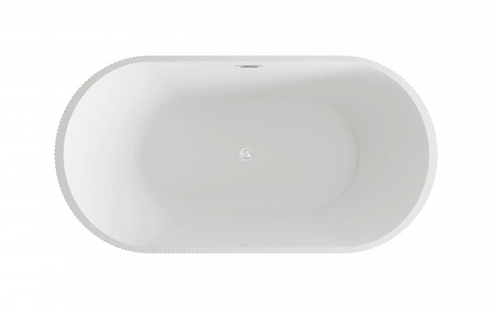 Immerse yourself in the ultimate relaxation experience with this elegant freestanding soaking bathtub, featuring a beautifully textured vertical fluted design that adds a touch of sophistication to your bathroom. The smooth, rounded rim offers comfortable arm support, making it the ideal spot to unwind. Equipped with a pop-up drain and integrated overflow, this tub seamlessly combines convenience and style. with a generous capacity and 15-inch soaking depth, it's perfect for those looking to indulge in a deep, luxurious soak. Available with customizable drain trim finishes like brushed gold, matte black, and more, this bathtub is designed to fit your unique style. Durable and easy to install with adjustable foot levelers, this tub is both a statement piece and a functional retreat in your home.