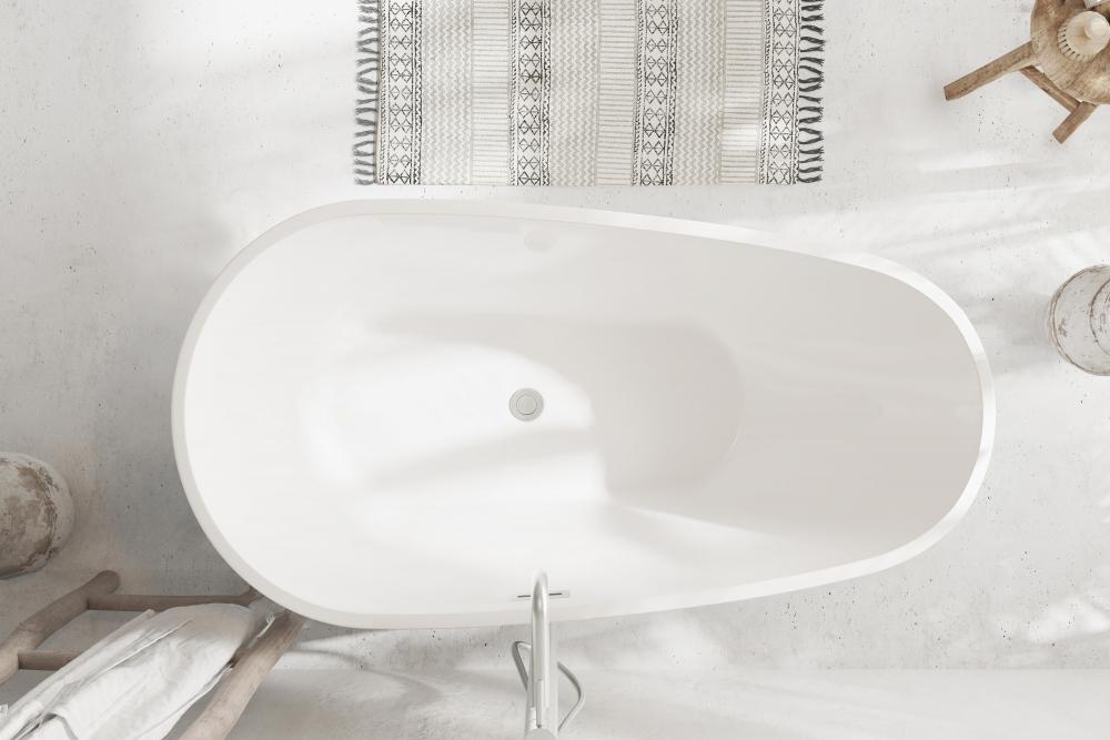 The oblong freestanding bathtub merges the softness of oval curves with the gentle symmetry of round designs, creating a truly amazing bathing experience.