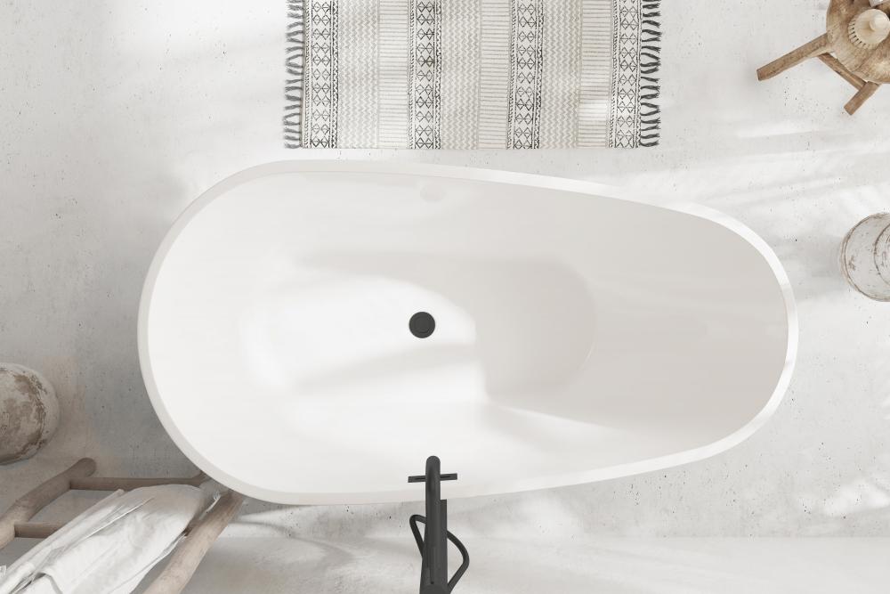 The oblong freestanding bathtub merges the softness of oval curves with the gentle symmetry of round designs, creating a truly amazing bathing experience.