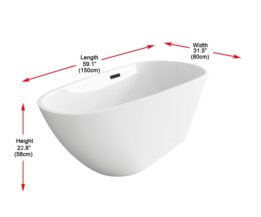Bathtub 59.1 x 31.5 x 23 GW with MBK drain kit