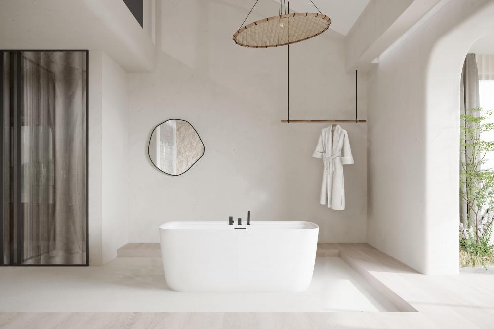 Its clean lines and modern silhouette make it the perfect fit for both contemporary and transitional bathroom decor, effortlessly enhancing the room’s overall style while providing a spacious, comfortable bathing experience.