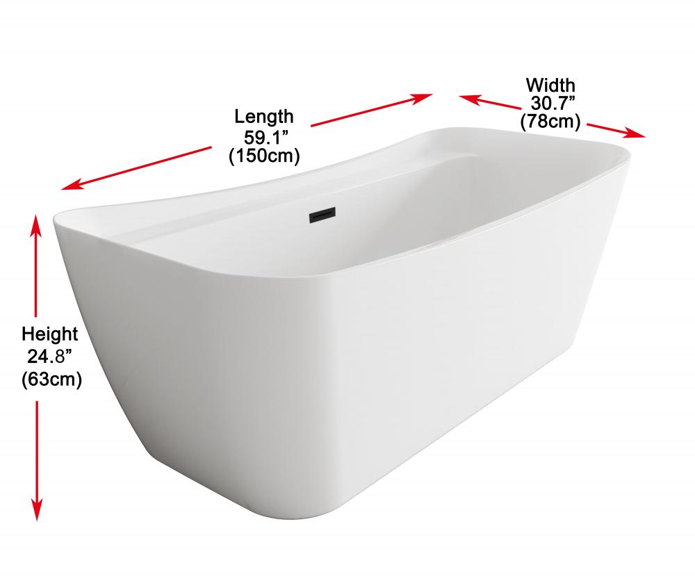Bathtub 59.1x30.7x24.8 GW with MBK drain kit