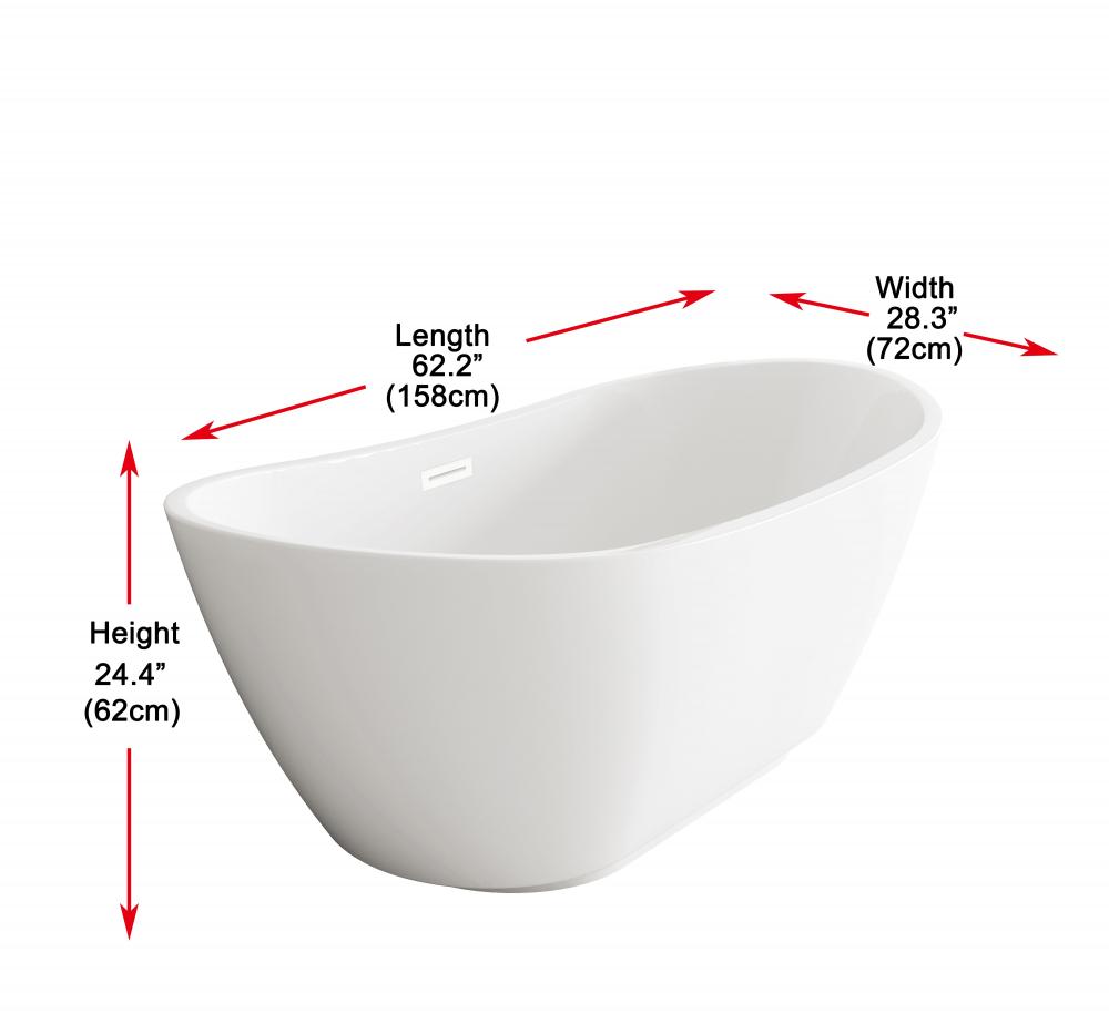 Bathtub 62.2x28.3x25.2 GW with WHT drain kit