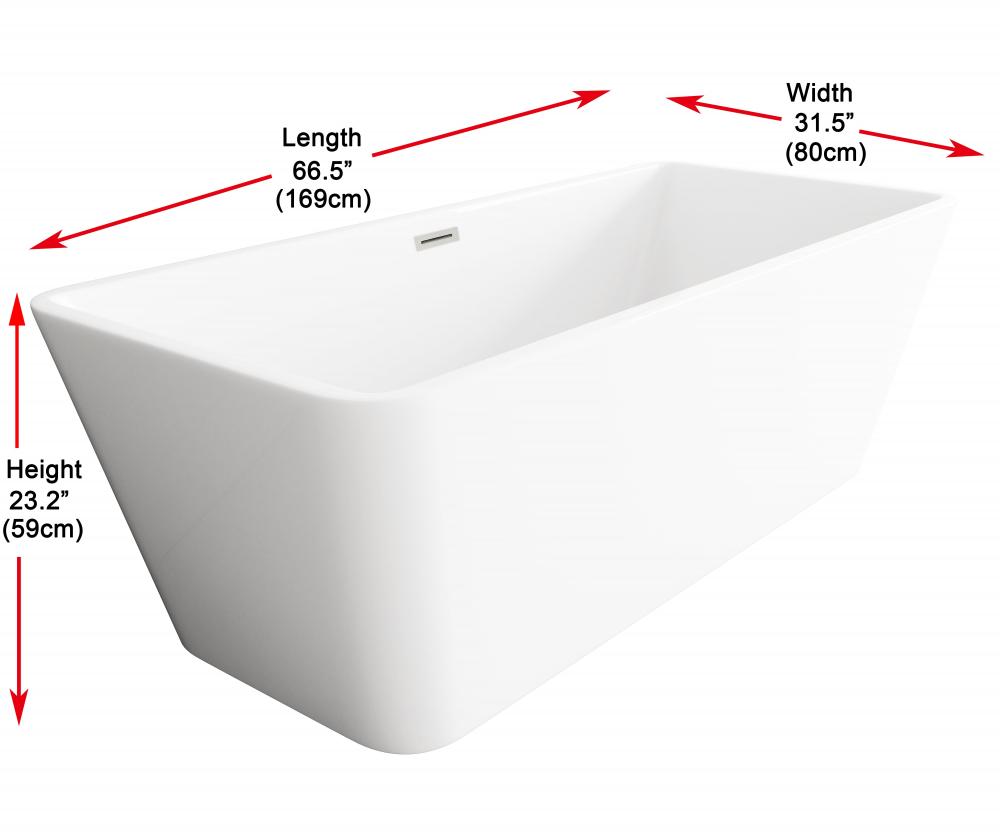Immerse yourself in the ultimate relaxation experience with this elegant freestanding soaking bathtub. for a modern, minimalist aesthetic, the rectangular freestanding bathtub is the perfect choice. Its sharp, clean lines and structured form bring a contemporary edge to any bathroom. The smooth, rounded rim offers comfortable arm support, making it the ideal spot to unwind. Equipped with a pop-up drain and integrated overflow, this tub seamlessly combines convenience and style. with a generous capacity and 15-inch soaking depth, it's perfect for those looking to indulge in a deep, luxurious soak. Available with customizable drain trim finishes like brushed gold, matte black, and more, this bathtub is designed to fit your unique style. Durable and easy to install with adjustable foot levelers, this tub is both a statement piece and a functional retreat in your home.