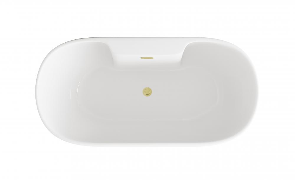 Immerse yourself in the ultimate relaxation experience with this elegant freestanding soaking bathtub. This modern bathtub is designed for a deck-mounted faucet, with faucet holes left un-drilled to allow you to customize their placement based on your unique layout and design preferences during installation. The smooth, rounded rim offers comfortable arm support, making it the ideal spot to unwind. Equipped with a pop-up drain and integrated overflow, this tub seamlessly combines convenience and style. with a generous capacity and 15-inch soaking depth, it's perfect for those looking to indulge in a deep, luxurious soak. Available with customizable drain trim finishes like brushed gold, matte black, and more, this bathtub is designed to fit your unique style. Durable and easy to install with adjustable foot levelers, this tub is both a statement piece and a functional retreat in your home.