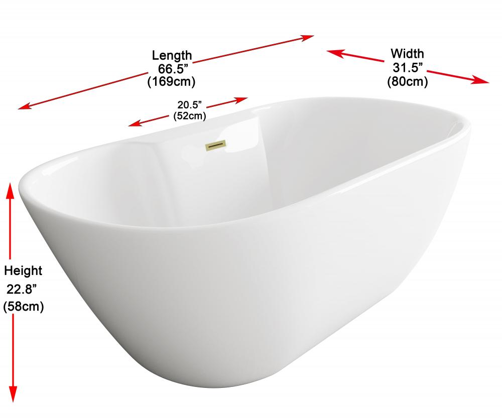 Bathtub 66.9 x 29.9 x 22.8 Glossy White