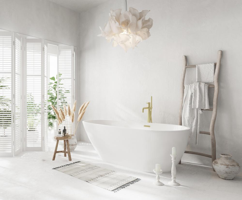 This freestanding tub offers a luxurious soaking experience with a 15-inch soaking depth and a spacious 91-gallon capacity.