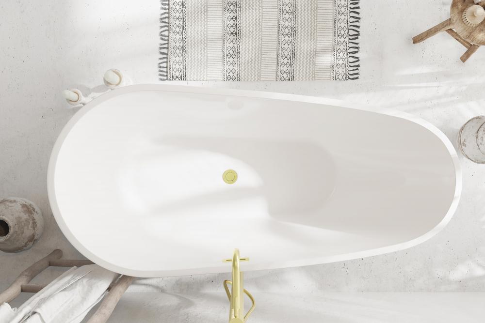 The oblong freestanding bathtub merges the softness of oval curves with the gentle symmetry of round designs, creating a truly amazing bathing experience.