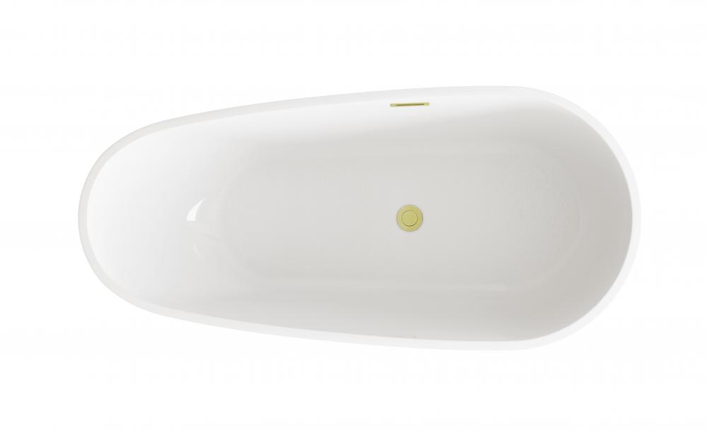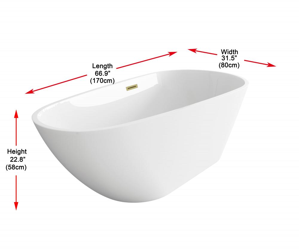 Immerse yourself in the ultimate relaxation experience with this elegant freestanding soaking bathtub. Its elongated, flowing shape offers both comfort and a unique visual appeal, making it the ideal choice for those seeking a blend of modern sophistication and organic design. The smooth, rounded rim offers comfortable arm support, making it the ideal spot to unwind. Equipped with a pop-up drain and integrated overflow, this tub seamlessly combines convenience and style. with a generous capacity and 15-inch soaking depth, it's perfect for those looking to indulge in a deep, luxurious soak. Available with customizable drain trim finishes like brushed gold, matte black, and more, this bathtub is designed to fit your unique style. Durable and easy to install with adjustable foot levelers, this tub is both a statement piece and a functional retreat in your home.