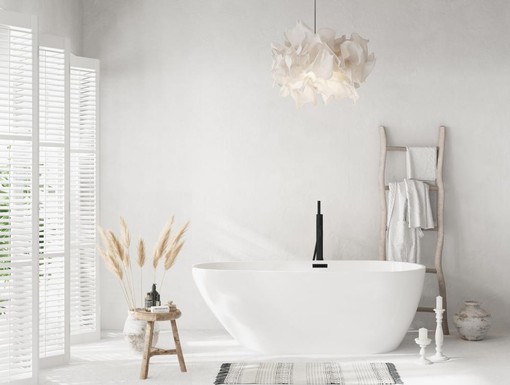 This freestanding tub offers a luxurious soaking experience with a 15-inch soaking depth and a spacious 91-gallon capacity.