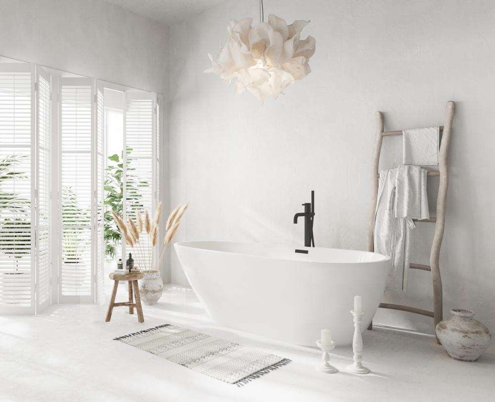 The oblong freestanding bathtub merges the softness of oval curves with the gentle symmetry of round designs, creating a truly amazing bathing experience.