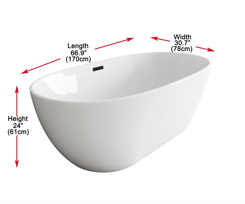 Bathtub 66.9"30.7"24.0" GW with MBK drain kit