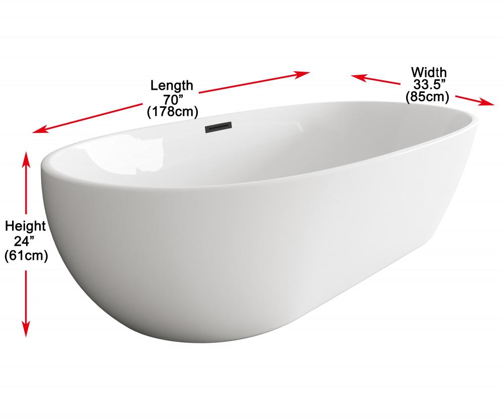 Bathtub 70.0"33.5"24.0" GW with MBK drain kit