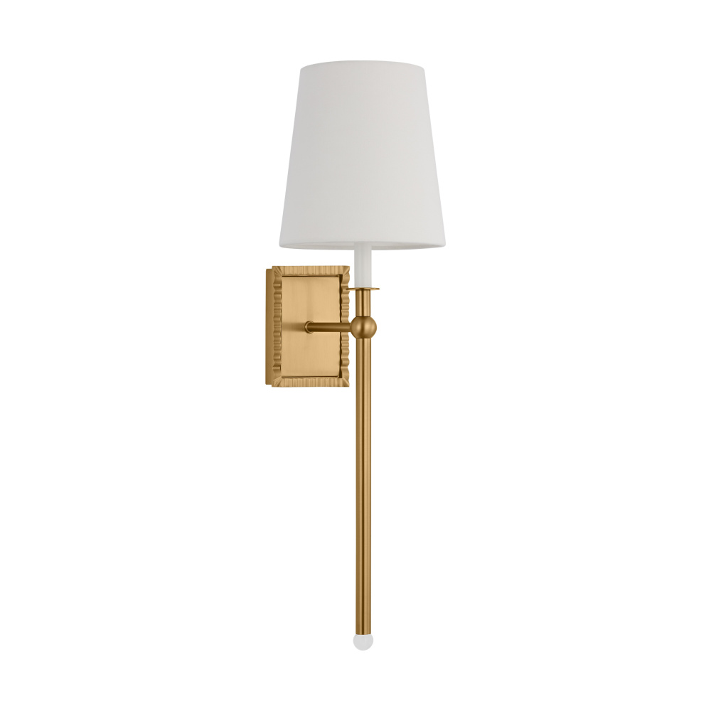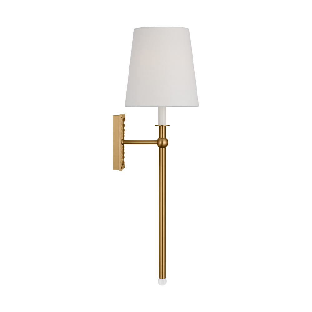 The Baxley wall sconce by Alexa Hampton exudes elegance, bringing modern elements to a traditional silhouette. With an exaggerated stem capped with a crystal ball, this sconce makes a bold, sleek statement and will align nicely in your hallway or as a bath vanity. The Alexa Hampton Collection brings a fresh take on traditional looks, beautiful and unique hand-applied finishes, and stunning, thoughtful, inspired pieces.