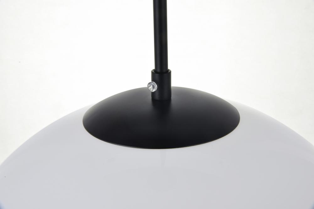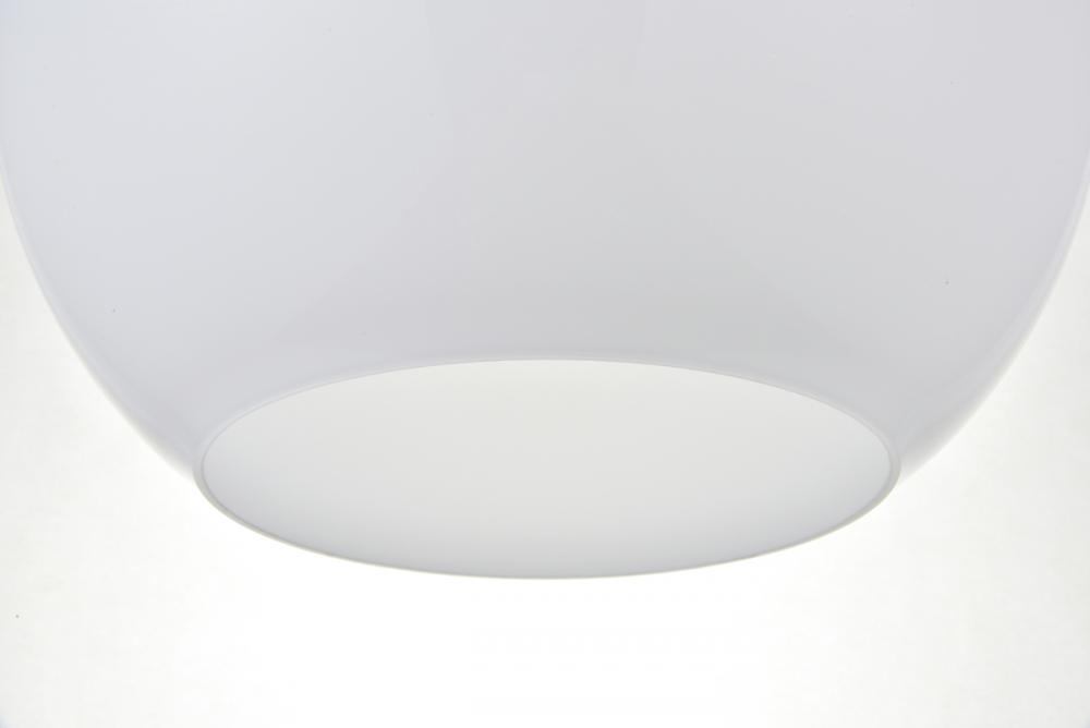 Feature 2: spherical frosted white glass shade with open center for easy bulb replacement