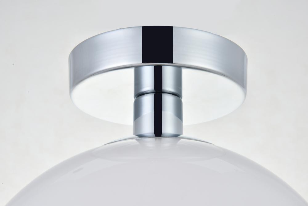 Refined style with a practical design, Baxter flush-mount ceiling lamps bring cosmopolitan sophistication anywhere, especially to an entryway, hallway, bathroom, kitchen, or closet. The smooth iron frame features a disk-shaped canopy and comes in a chrome finish. The frosted white spherical glass shade remains open at the center to allow for effortless replacement of the filament-style bulb (not included). Living in the big city has never been this easy.