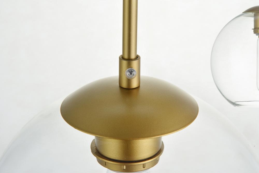 Feature 2: a row of three identical spherical clear glass shades with open center for easy bulb replacement; requires incandescent or led e26 bulbs (not included)