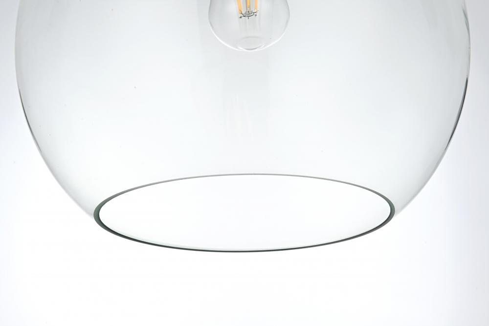 Features a clear glass shade, offering bright, unobstructed light and a clean, modern look.