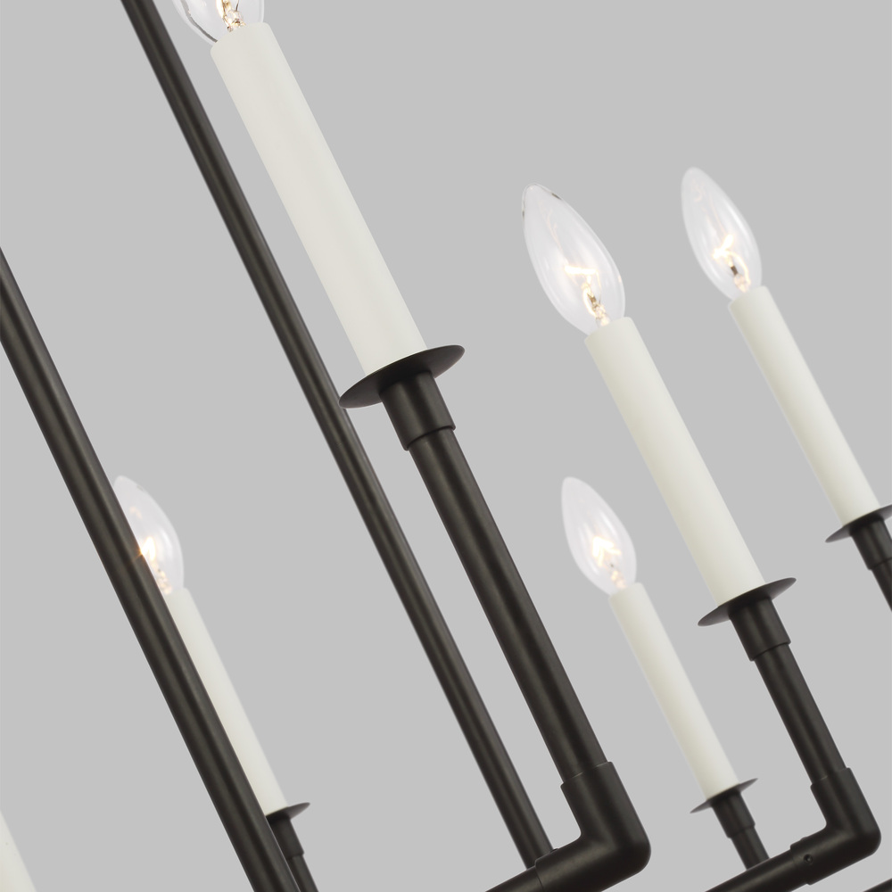 Chapman & Myers designed this modern series with sculptural sensibility, crafted of steel with white candle holders to complete the design. Bayview is available in Aged Iron or Polished Nickel finish and the assortment includes: medium, large and linear chandeliers, left and right sconces and a single sconce. Perfect for a dining area.