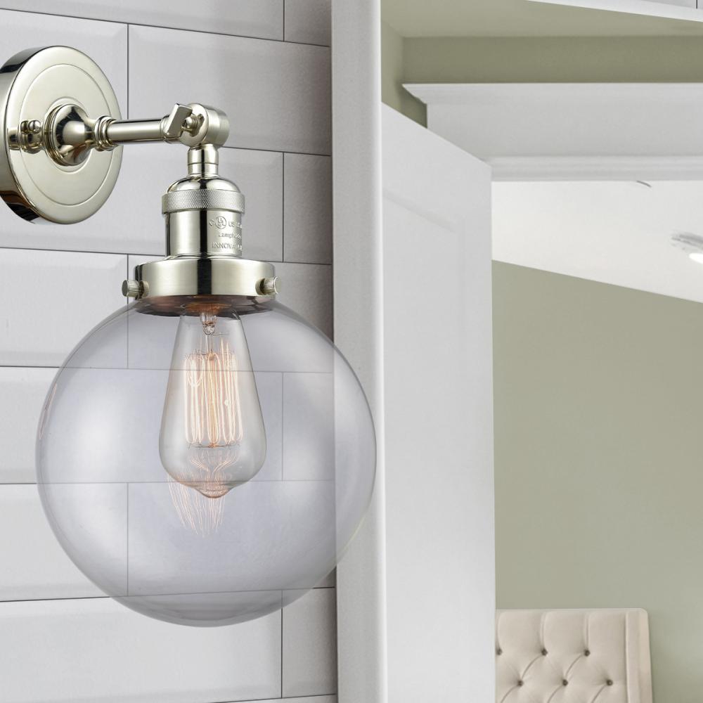 Beacon - 1 Light - 8 inch - Polished Nickel - Clear Shade - Adjustable Sconce