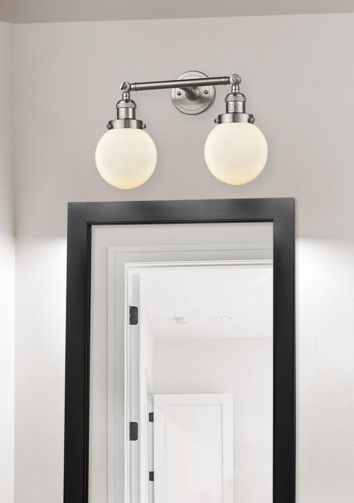 Beacon - 2 Light - 6 inch - Brushed Satin Nickel - Matte White Shade - Adjustable Bath Vanity Light