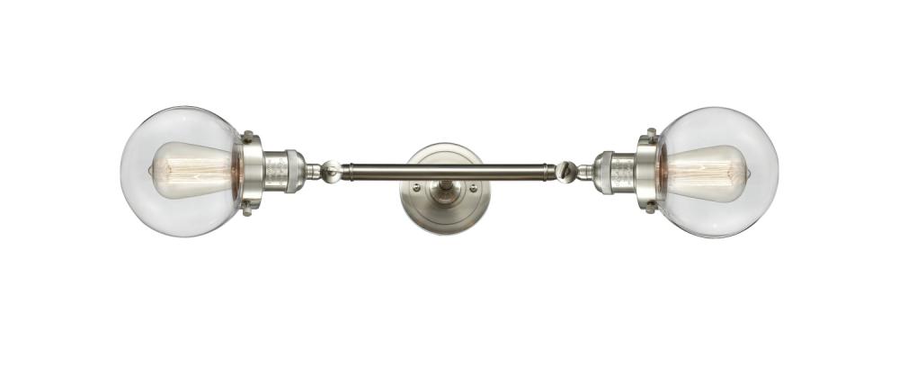 Beacon - 2 Light - 6 inch - Brushed Satin Nickel - Clear Shade - Adjustable Bath Vanity Light