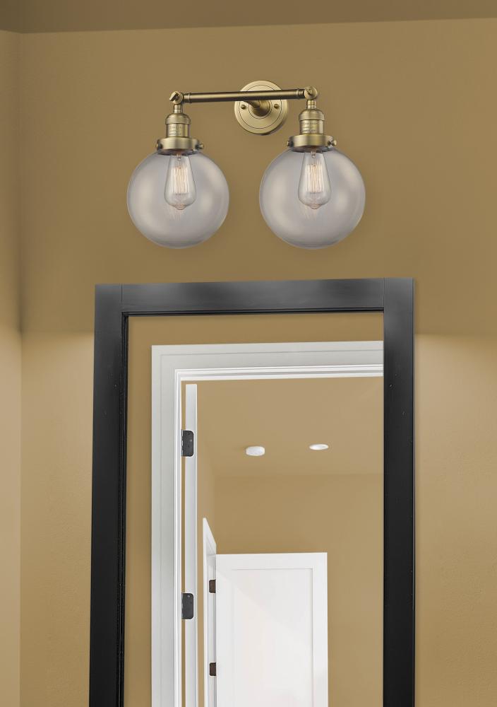 Beacon - 2 Light - 8 inch - Brushed Brass - Clear Shade - Adjustable Bath Vanity Light