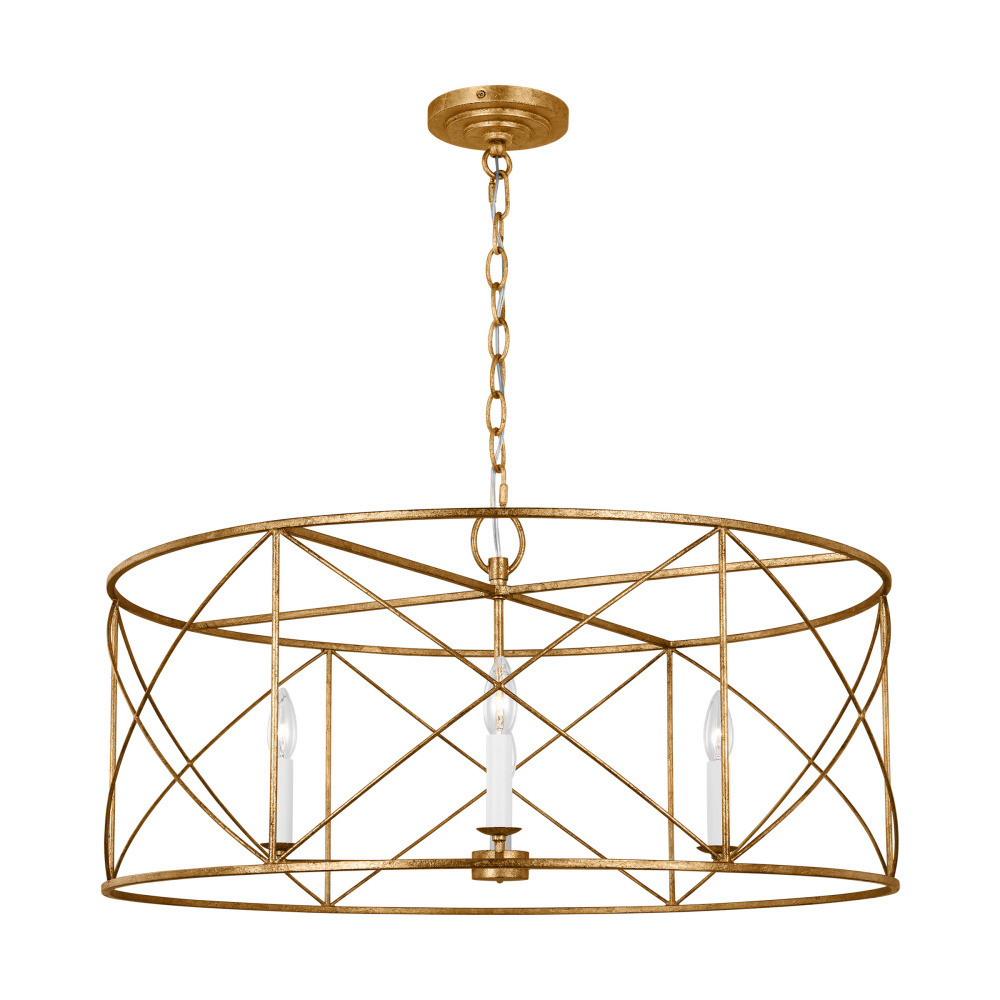 The Beatrix series by Chapman & Myers is open-caged design chandelier adding a bright light to any modern farmhouse home decor. It features white candelabra candle holder and refined finishes, showing a classic and rustic flair. Each lantern has a distinctive X cross detailing on their frame which adds both strength and visual interest. Ideal for over a kitchen island or dining room table.