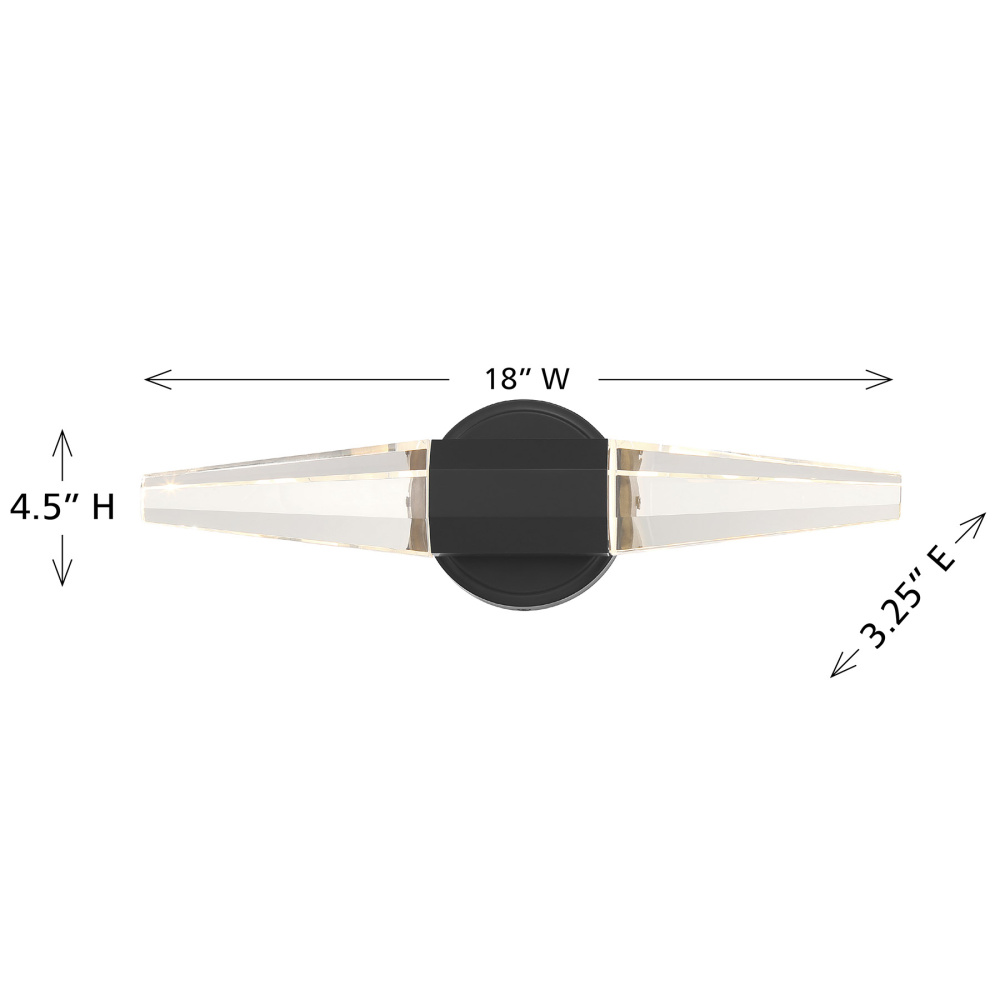 Get right to the point of style with the Savoy House Beaumont LED wall sconce. Two pieces of faceted, pointed K9 crystal burst forth from an understated base, which is finished in super chic Black Lustre. This edgy style is a perfect way to illuminate a bath vanity, piece of art, hallway, living room, bedside table or any other space you can imagine! Beaumont is 5.25" in height, 18" in width and extends 4.25" from the wall. It uses integrated LED light sources.